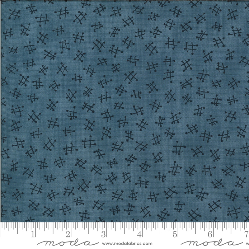 Moda The Blues Crochet Fitsgerald fabric—100% quilting cotton, 44/45 wide. Perfect for crafting cozy quilts with a stylish blue pattern. Ideal for DIY enthusiasts seeking quality material.
